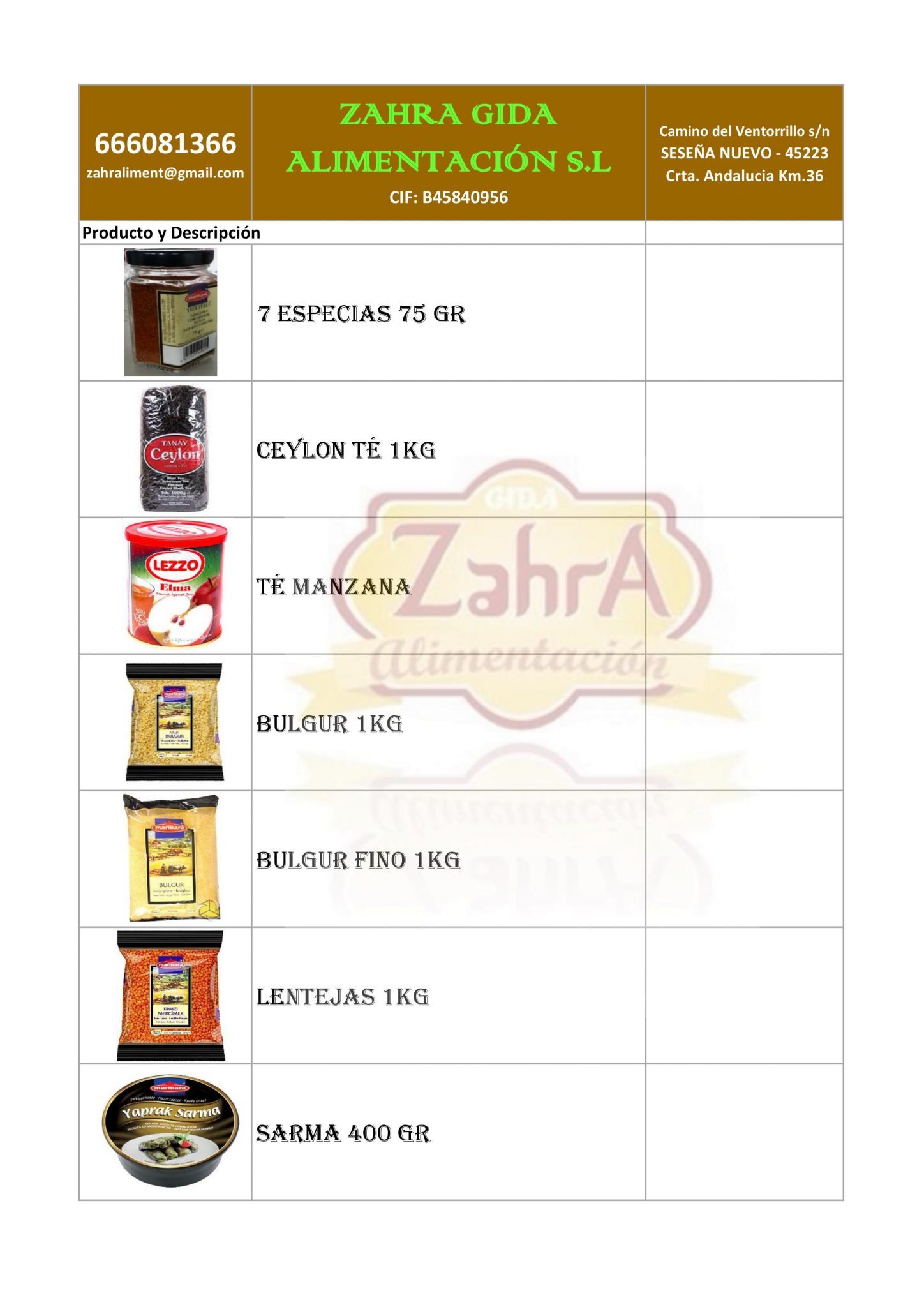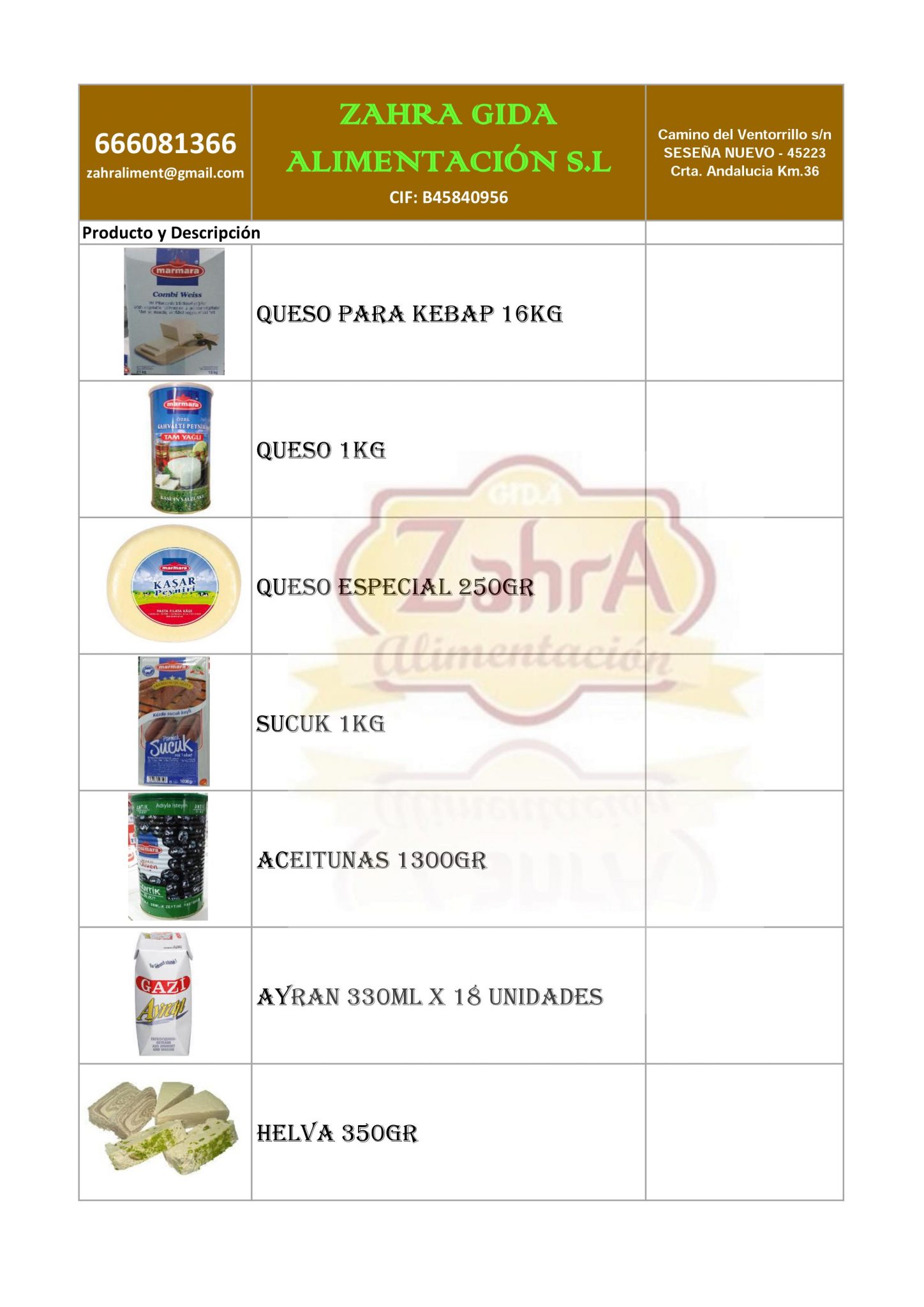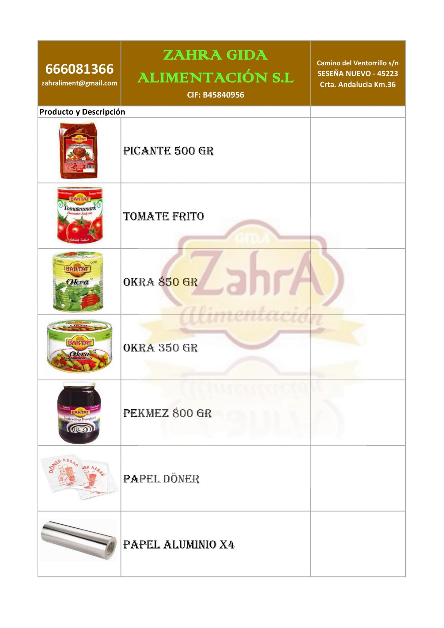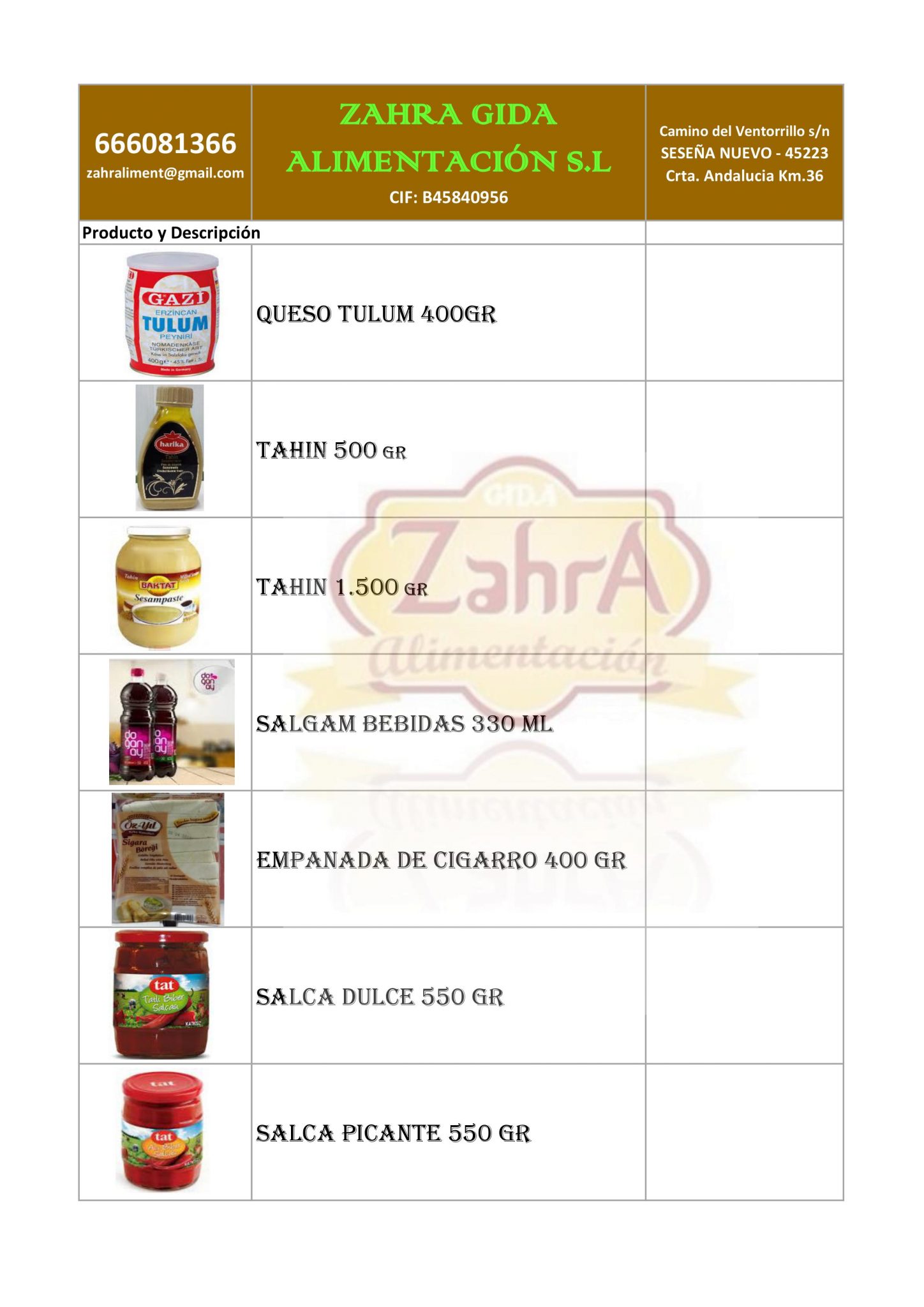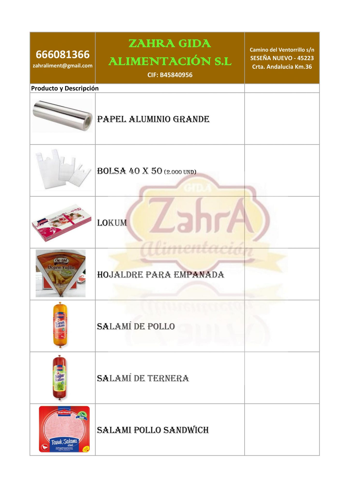 ZAHRA GIDA ALIMENTACIÓN S.L